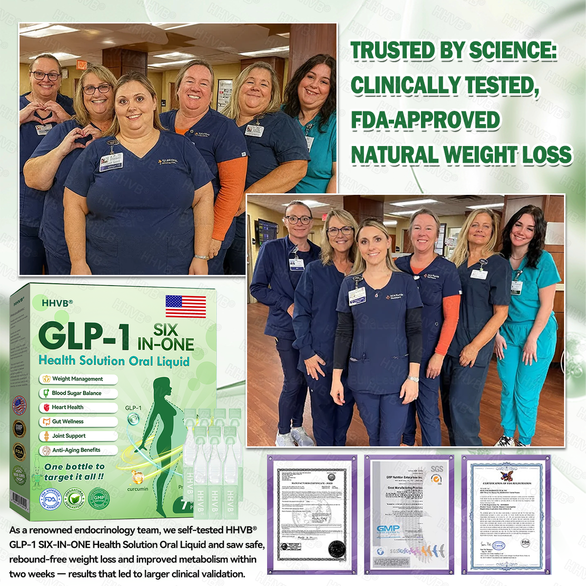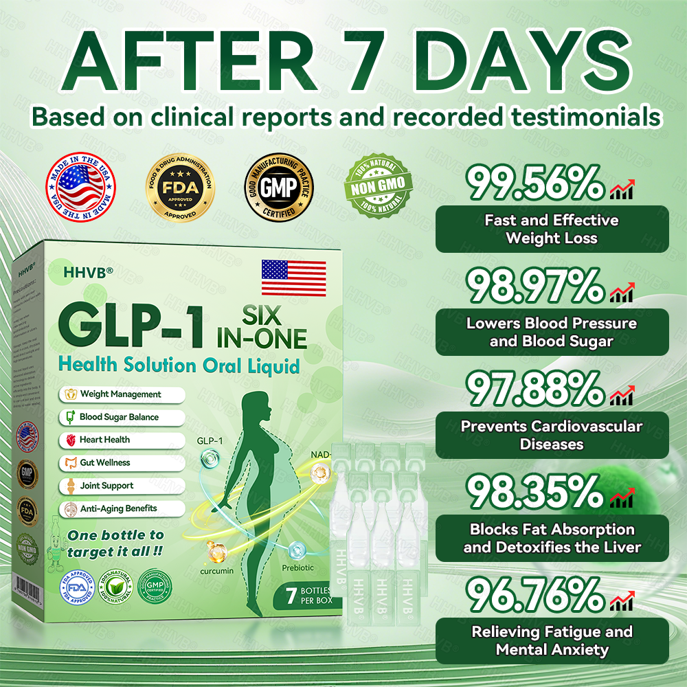 Clinically tested by endocrinologist, HHVBยฎ GLP-1 Six-in-One Health Oral Solutionย activation can significantly improve obesity and other health issues within just 7 days.